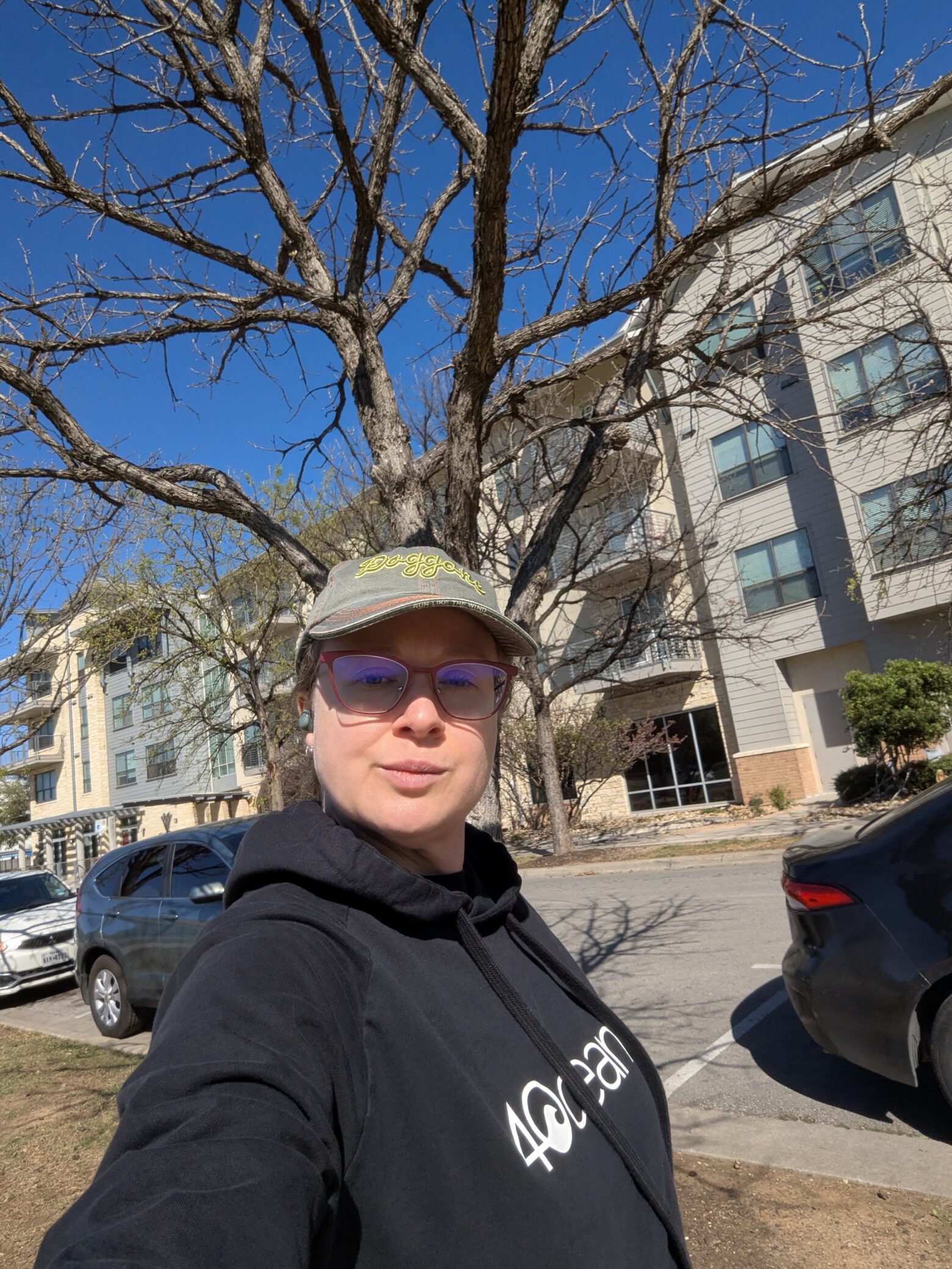 Not only is it long and covers my butt but it has a really big front pocket (great for your phone and keys, and it’s just really comfortable. It’s like the perfect weight for Texas weather and blocking the wind. I just wanted to share that with you guys if you’re looking to get something that’s not going to shed any micro plastics and be really comfortable and modest, like cover all the parts of your body you wanted to get covered. It comes in black and then the traditional 4ocean royal blue, that nice medium bright blue.