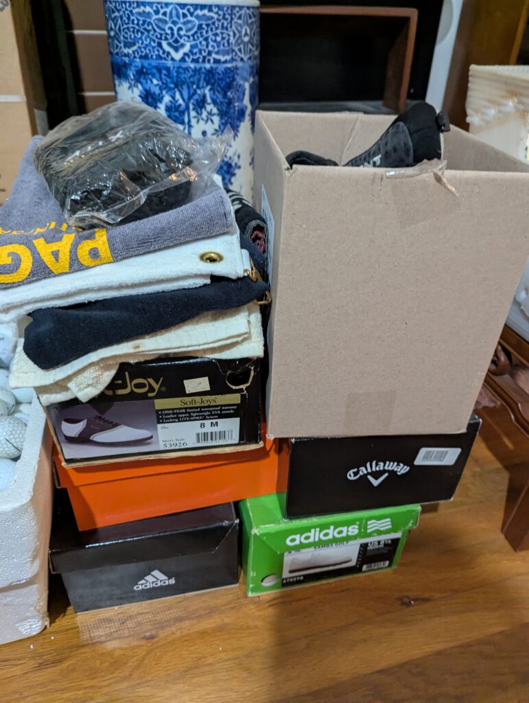 We have the following golf equipment items: clubs, bags, travel cover, golf balls, brand new shoes, towels, and quite a few brand new golf polo shirts as well. Are these things that you all would be interested in accepting to rehome?